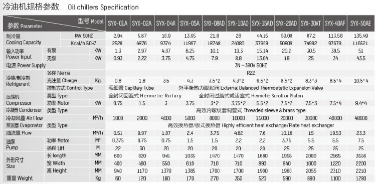 1、主機采用全新進口名牌壓縮機,運行可靠,效率高,噪音低,專業(yè)針對各種油冷卻流體和材料設(shè)計。